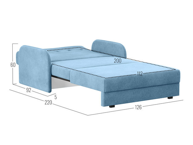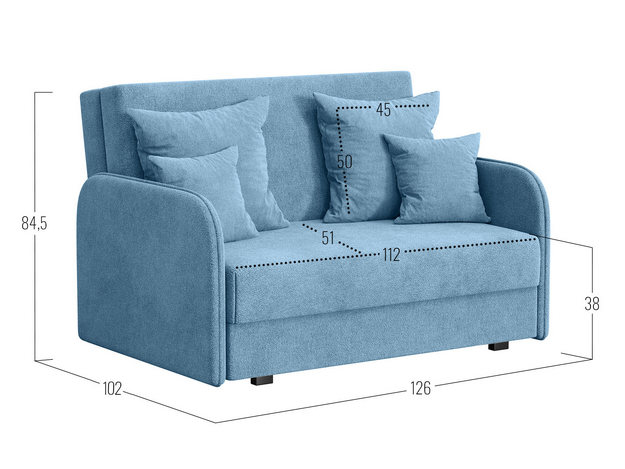- Посадочное место без подушек (ШхГ): 112 х 66 см.