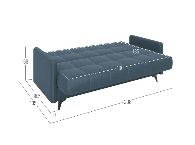 Прямой диван Бахус станет практичным решением для современной гостиной. Компактная модель с высокими опорами смотрится легко и подходит для небольших комнат. Прочная основа из металлокаркаса обеспечивает надежность и долговечность конструкции. Три положения спинки позволяют с комфортом отдыхать сидя или полулежа, а также трансформировать диван в полноценную кровать.