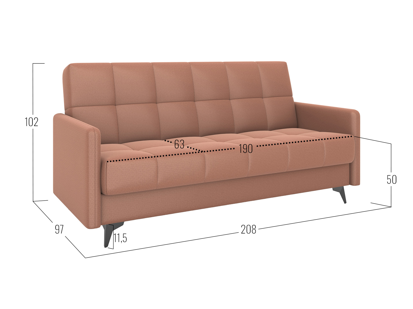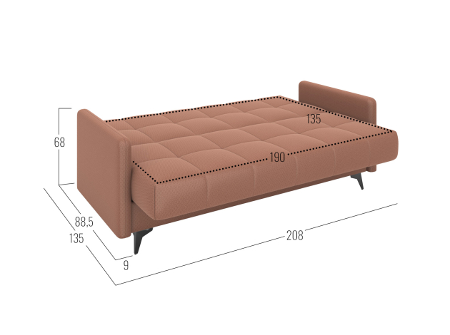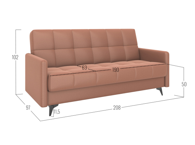 Прямой диван Бахус станет практичным решением для современной гостиной. Компактная модель с высокими опорами смотрится легко и подходит для небольших комнат. Прочная основа из металлокаркаса обеспечивает надежность и долговечность конструкции. Три положения спинки позволяют с комфортом отдыхать сидя или полулежа, а также трансформировать диван в полноценную кровать.
