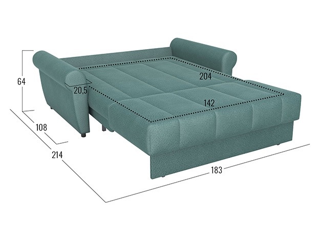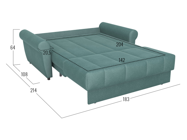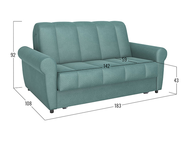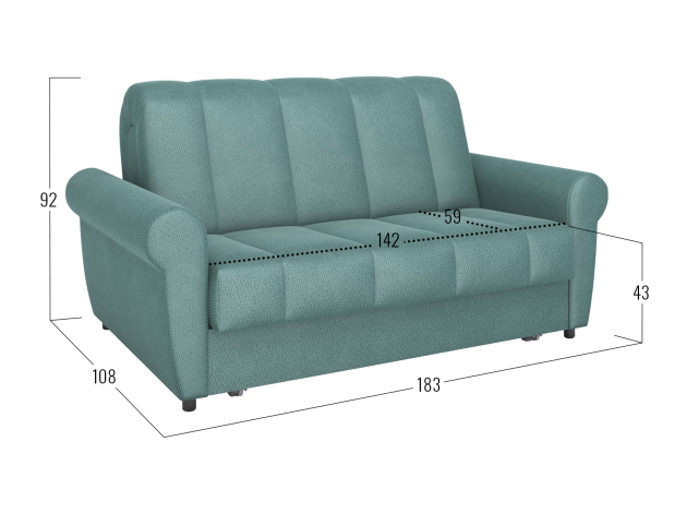 Прямой диван Берта Аквамарин, велюр Без ящика 142х204 см