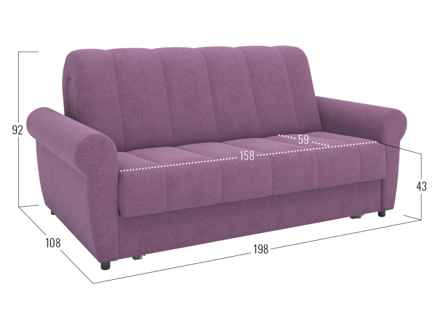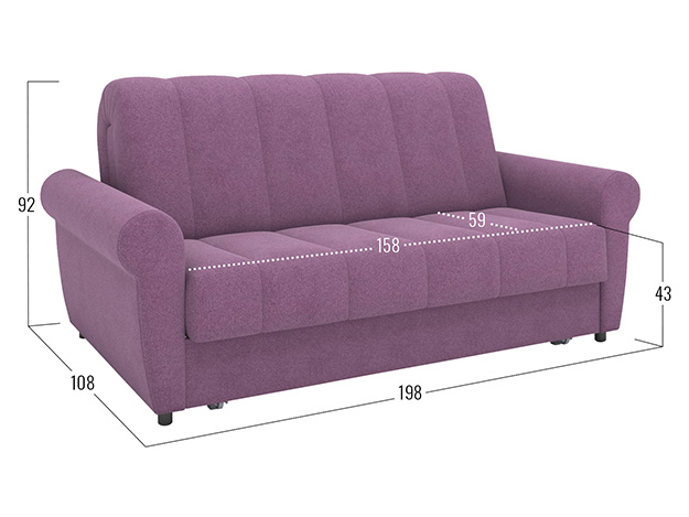 Прямой диван Берта Лиловый, шенилл Без ящика 158х204 см