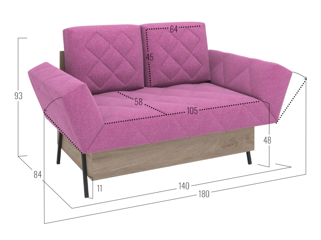 Прямой диван Джойс — настоящая находка для небольшой квартиры, кухни или дачи. Мягкие подушки с декоративной стежкой обеспечивают комфорт во время отдыха. Подлокотники регулируются: их можно установить под углом, сэкономив пространство, а также разложить, увеличив количество посадочных мест или превратив диван в ровную зону для сна. Короб в основании подходит для хранения постельных принадлежностей, а высокие ножки упрощают уборку.