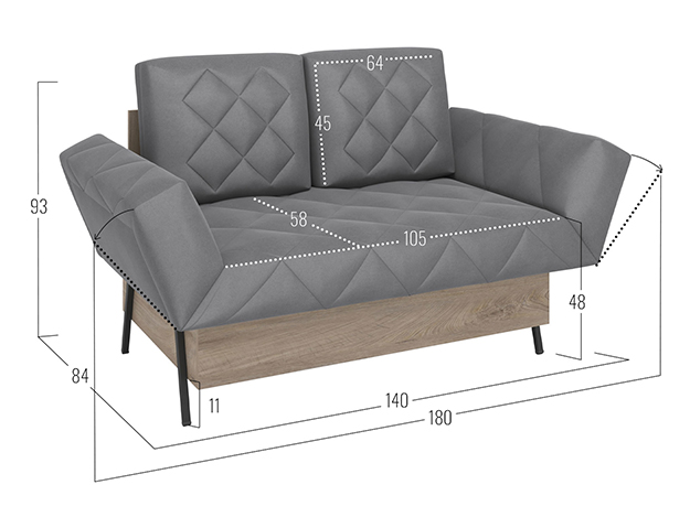 - Посадочное место без подушек (ШхГ): 105 х 82 см.