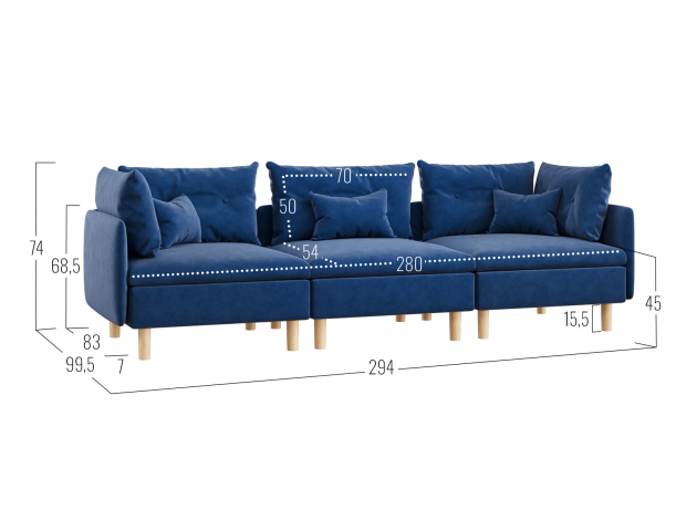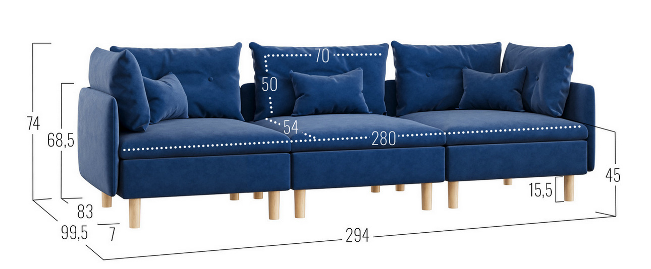 - Посадочное место без подушек (ШхГ):280 х 92 см.