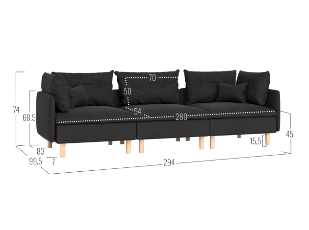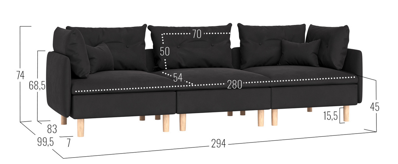 - Посадочное место без подушек (ШхГ):280 х 92 см.