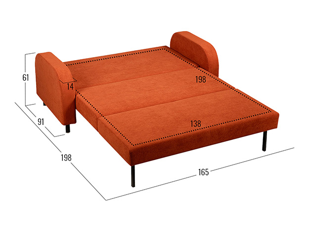 - Посадочное место без подушек (ШхГ): 138 х 63 см.