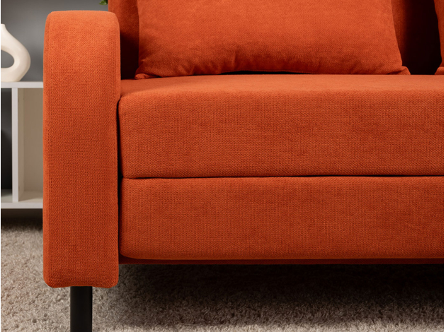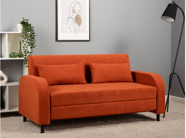 Прямой диван Киото — это сочетание гармоничного силуэта и плавных линий. Благодаря эстетичной обивке спинки модель можно установить как вдоль стены, так и в любой точке комнаты. Диван легко раскладывается, образуя ровное и комфортное место для сна. Износостойкая ткань имеет специальную водоотталкивающую пропитку, что позволяет надолго сохранить привлекательный внешний вид мебели. Ножки придают конструкции визуальную легкость и облегчают уборку.