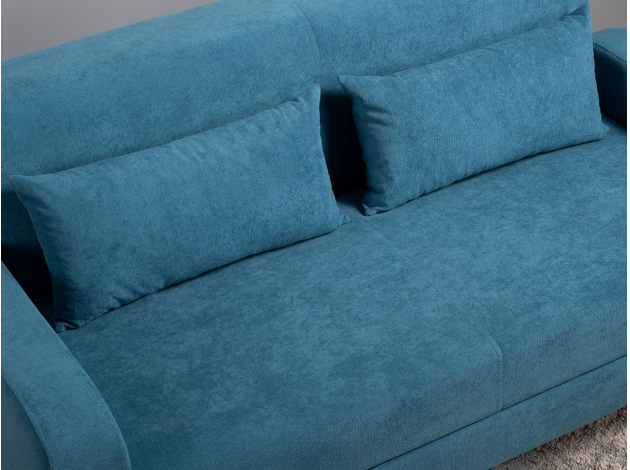 Прямой диван Киото — это сочетание гармоничного силуэта и плавных линий. Благодаря эстетичной обивке спинки модель можно установить как вдоль стены, так и в любой точке комнаты. Диван легко раскладывается, образуя ровное и комфортное место для сна. Износостойкая ткань имеет специальную водоотталкивающую пропитку, что позволяет надолго сохранить привлекательный внешний вид мебели. Ножки придают конструкции визуальную легкость и облегчают уборку.