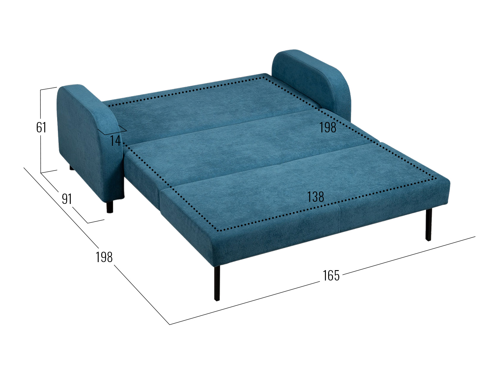 - Посадочное место без подушек (ШхГ): 138 х 63 см.