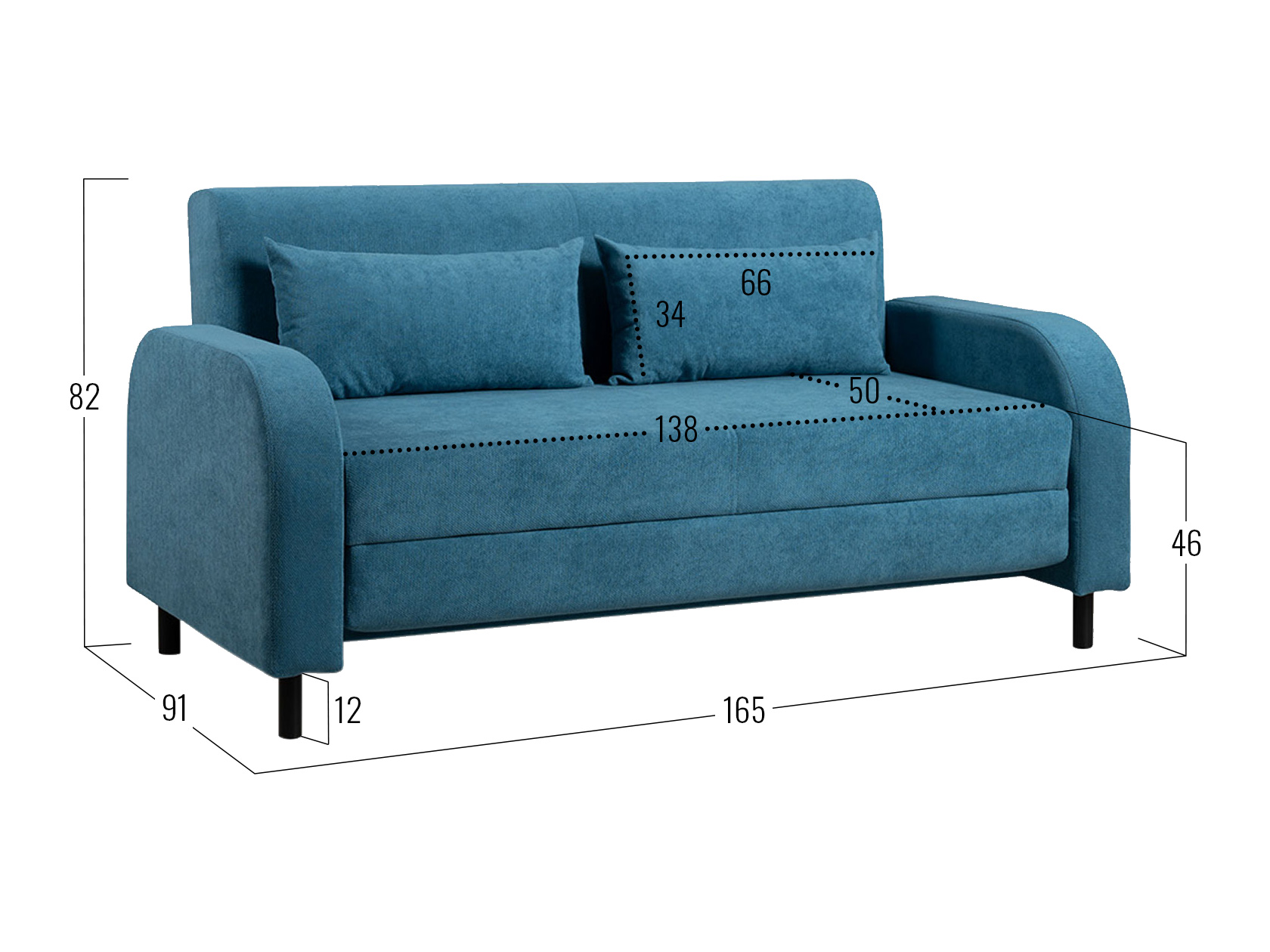 - Декоративные подушки (ВхШ): 66 х 34 см (2 шт.).