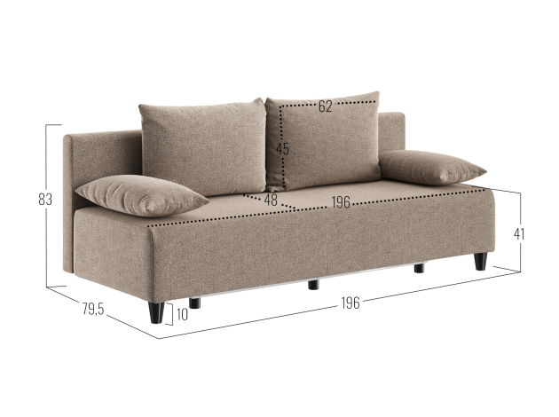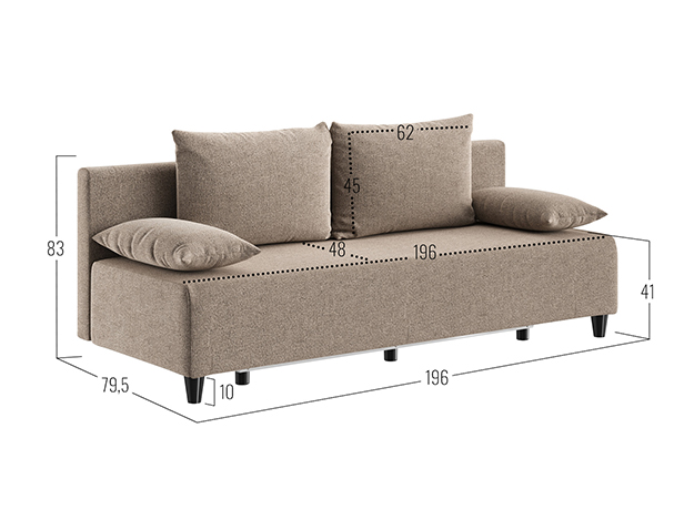 - Посадочное место без подушек (ШхГ): 196 х 68 см.