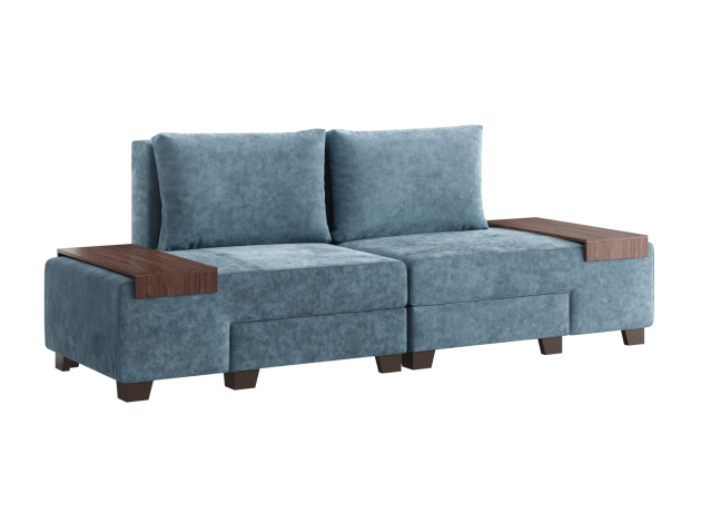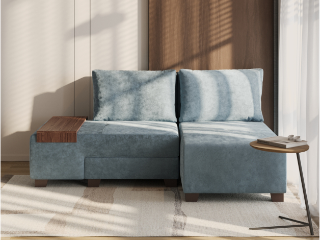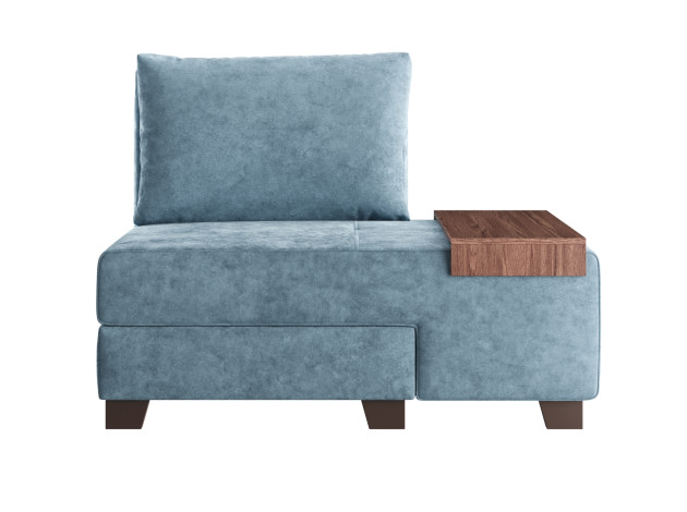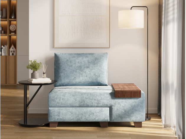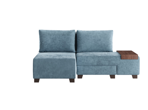Прямой диван Ленни Серо-голубой, велюр Со столиком