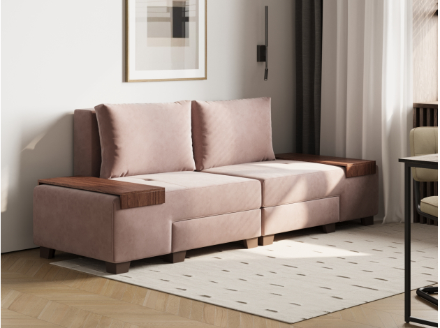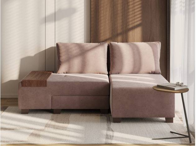 Прямой диван Ленни Латте, велюр Со столиком
