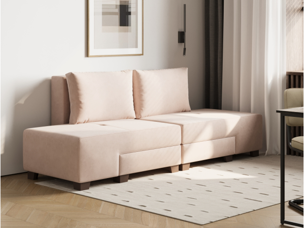 Прямой диван Ленни Бежевый, велюр Без дополнительных элементов