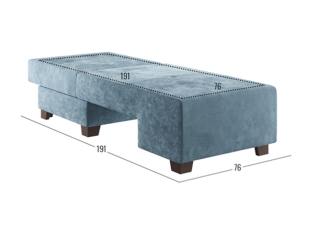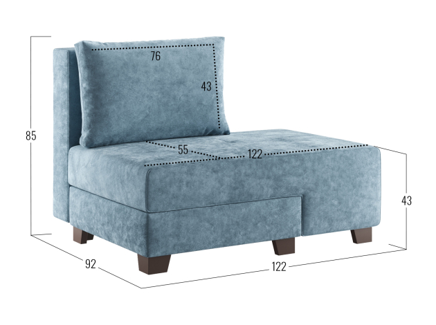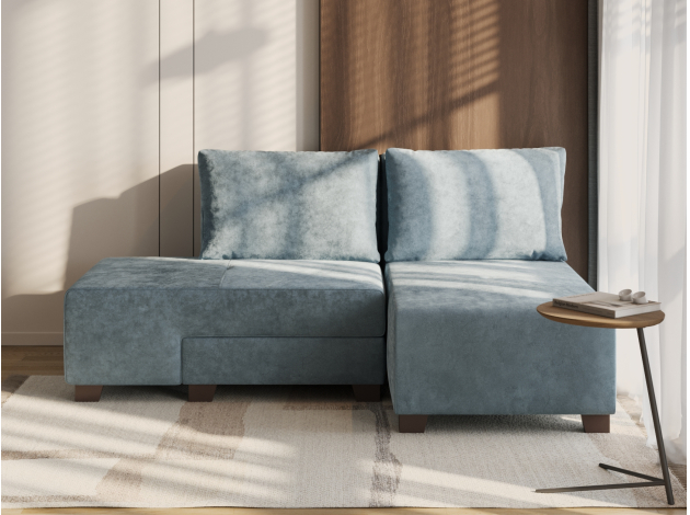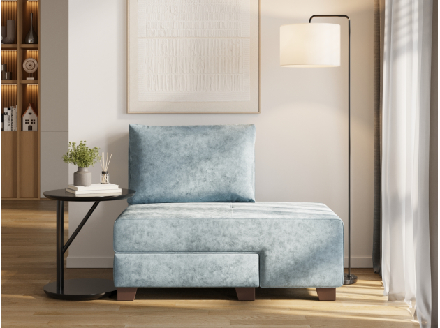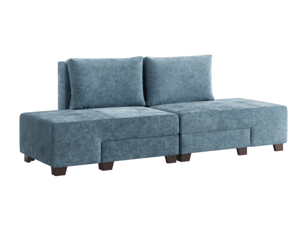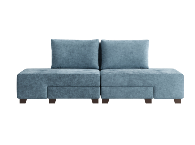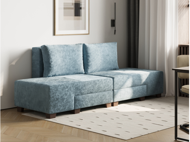 Прямой диван Ленни Серо-голубой, велюр Без дополнительных элементов