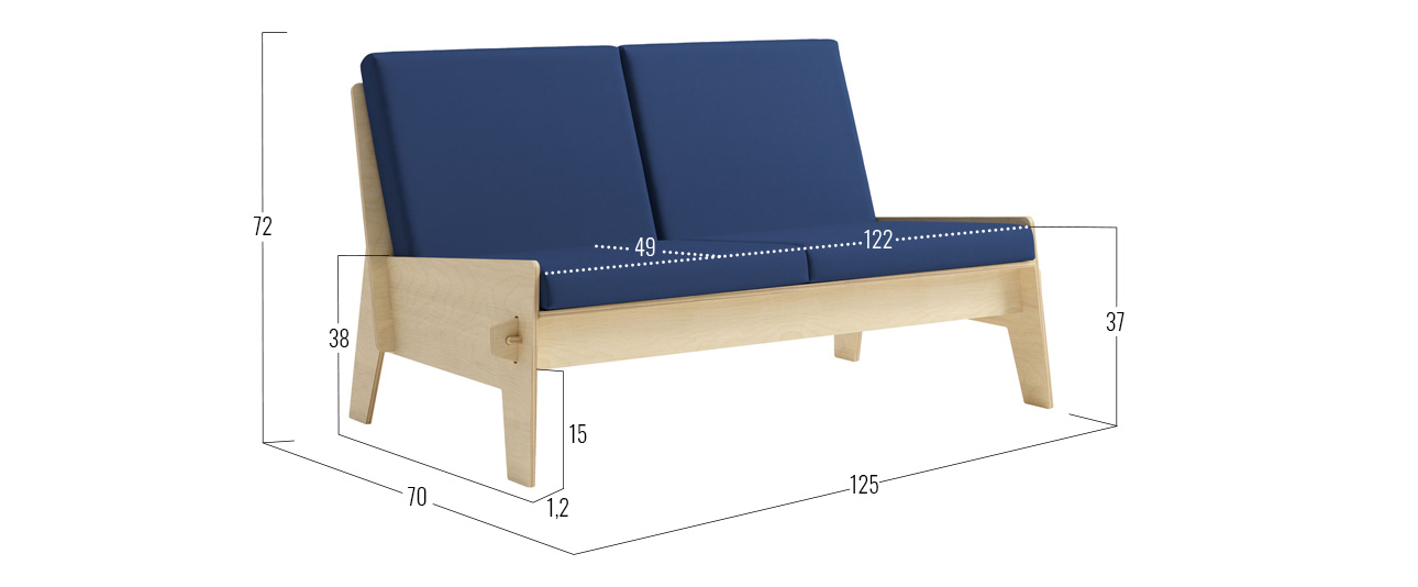 - Посадочное место без подушек (ШхГ): 122 х 55 см.