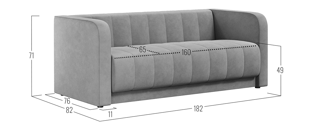 - Посадочное место (ВхШхГ): 49 х 160 х 65 см.