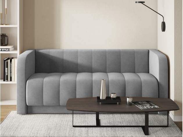 Прямой диван Мона — модель для оформления современного интерьера. Невысокие спинка и подлокотники образуют единую линию, а вертикальная строчка служит лаконичным декором обивки. Такой дизайн не перегружает обстановку и смотрится органично в разных стилях меблировки. В просторной комнате или совмещенной кухне-гостиной диван можно использовать для зонирования. Удобный уклон сиденья и спинки позволяет равномерно распределить нагрузку и обеспечивает комфортную посадку.