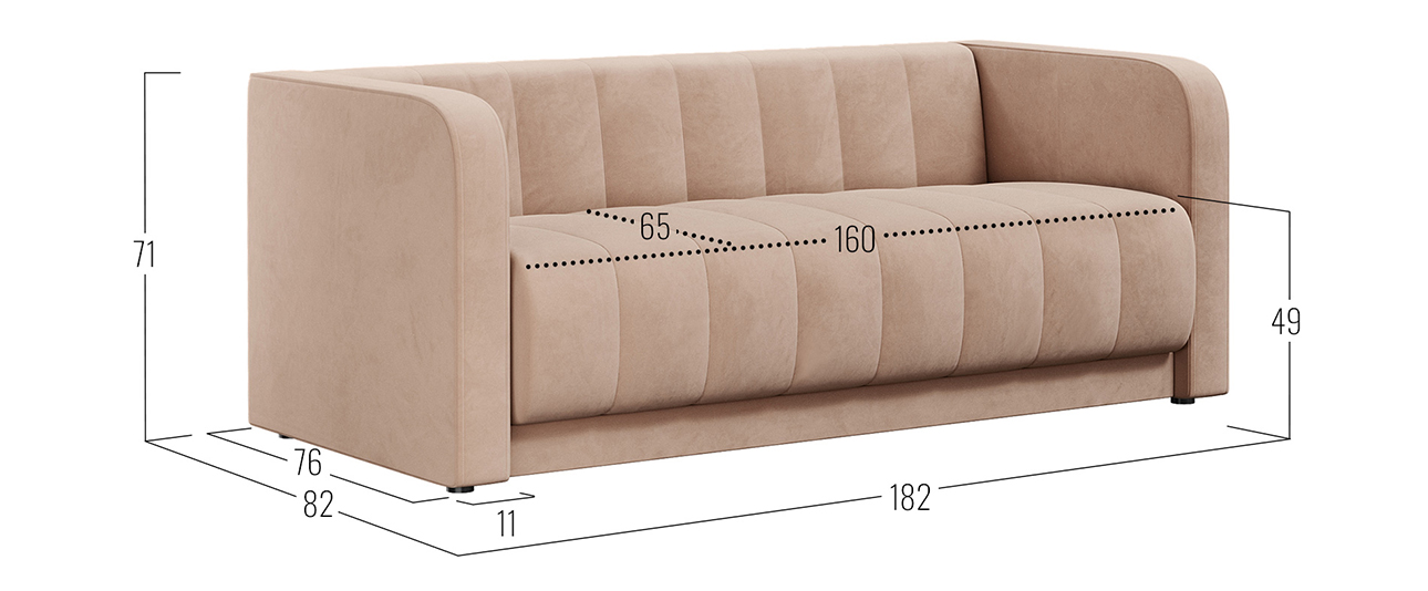 - Посадочное место (ВхШхГ): 49 х 160 х 65 см.