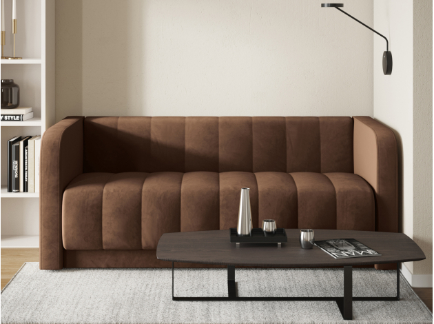 Прямой диван Мона — модель для оформления современного интерьера. Невысокие спинка и подлокотники образуют единую линию, а вертикальная строчка служит лаконичным декором обивки. Такой дизайн не перегружает обстановку и смотрится органично в разных стилях меблировки. В просторной комнате или совмещенной кухне-гостиной диван можно использовать для зонирования. Удобный уклон сиденья и спинки позволяет равномерно распределить нагрузку и обеспечивает комфортную посадку.