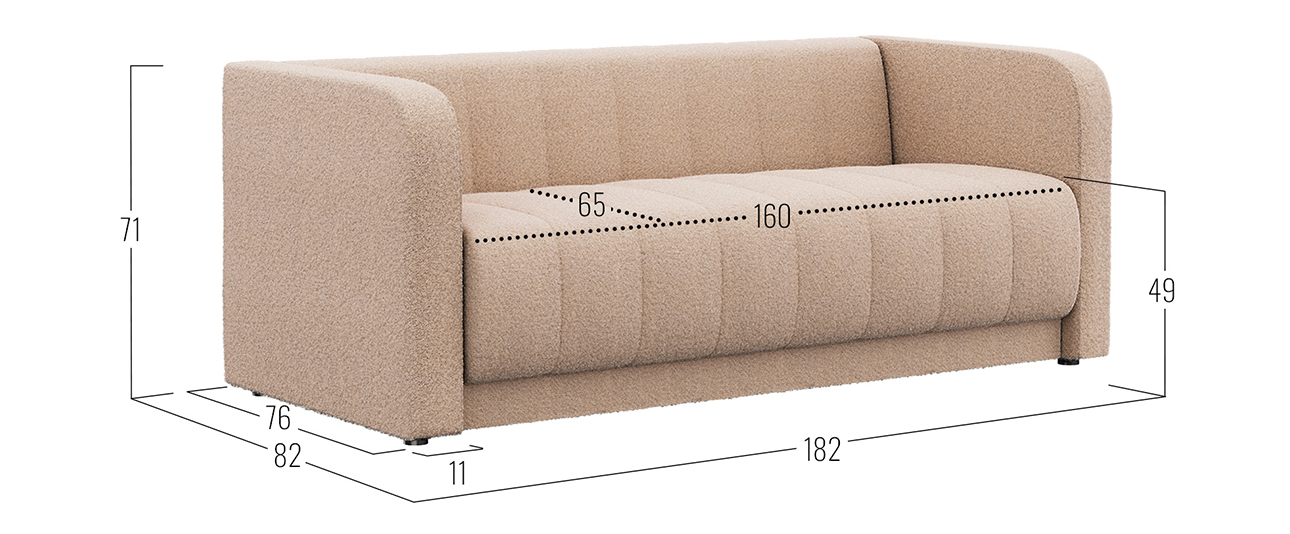 - Посадочное место (ВхШхГ): 49 х 160 х 65 см.