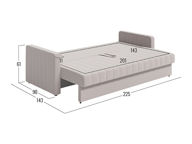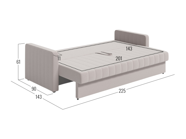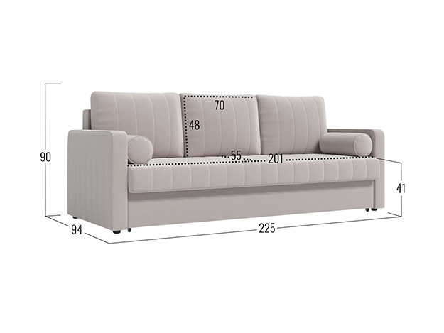 - Посадочное место без подушек (ШхГ): 201 х 79 см.