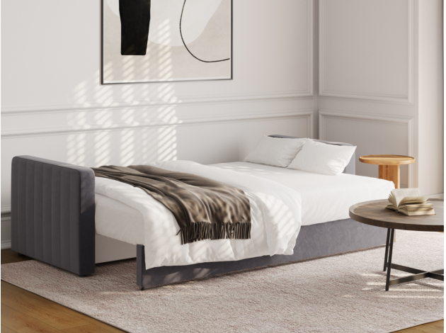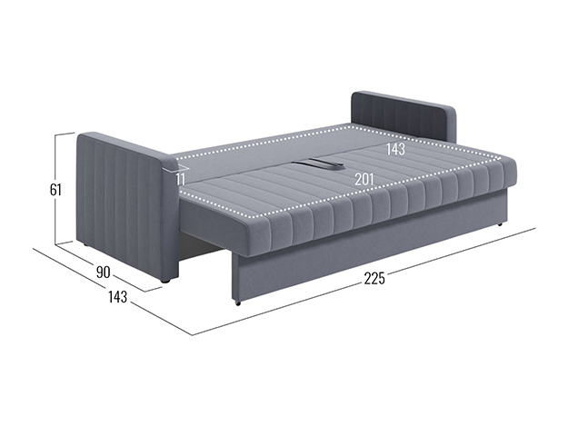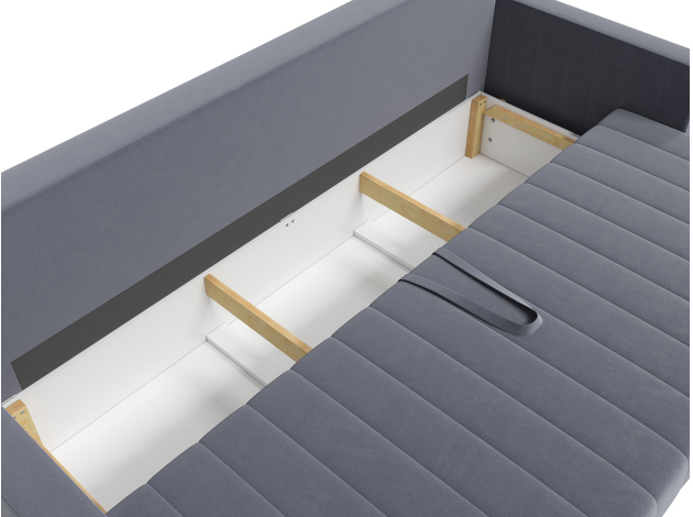 С помощью надежного механизма модель легко трансформировать в ровное спальное место. Конструкция проста в эксплуатации и рассчитана на частое использование. Практичный бельевой короб предназначен для аккуратного хранения одеял, пледов и других постельных принадлежностей.