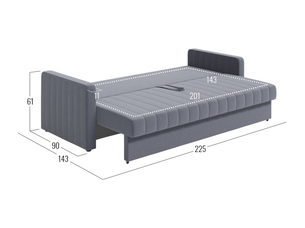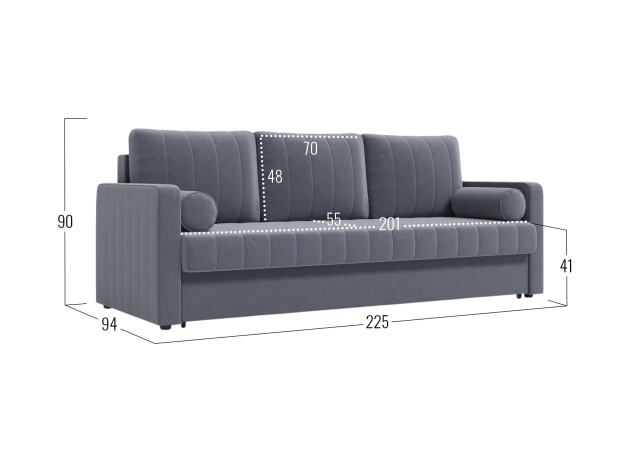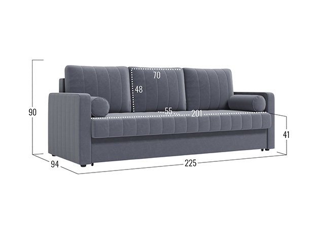 - Посадочное место без подушек (ШхГ): 201 х 79 см.