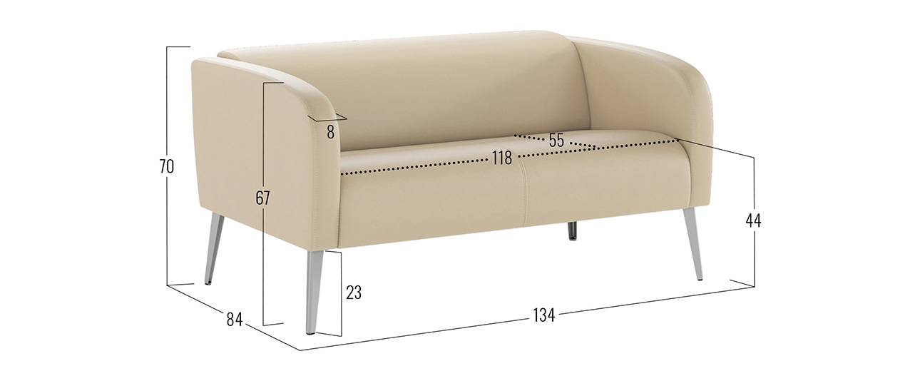 - Посадочное место (ВхШхГ): 44 х 118 х 55 см.