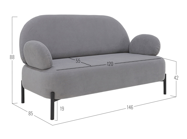 Прямой диван Прато Графит, велюр
