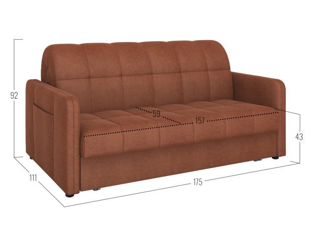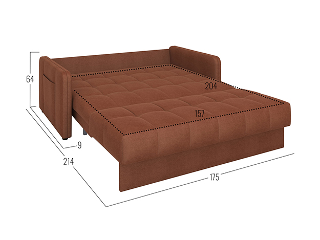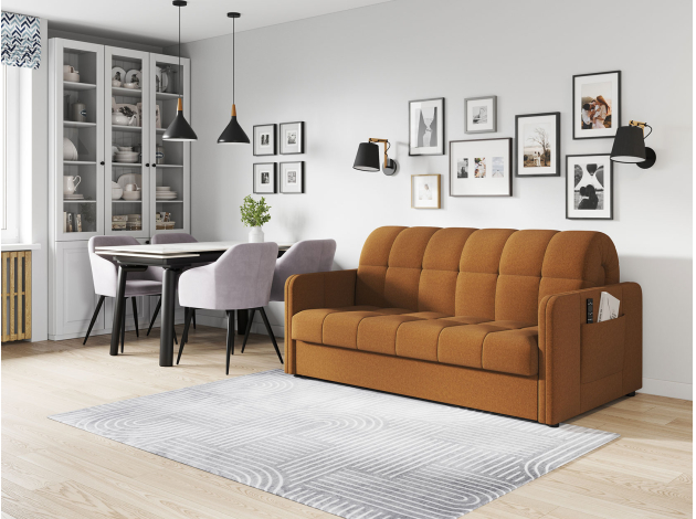 Простой и надежный механизм легко трансформирует диван в просторное спальное место. Анатомическое основание помогает расслабиться и с комфортом устроиться во время отдыха. Специальная планка защищает от контакта со стеной. Съемный чехол позволяет поддерживать чистоту обивки, своевременно очищая ткань от загрязнений.