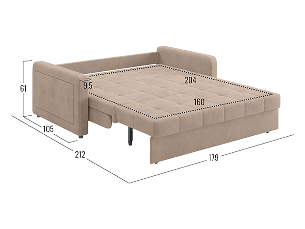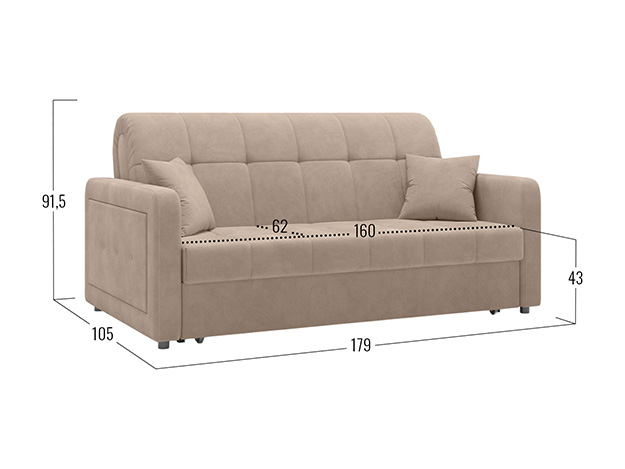Прямой диван Реген Бежевый, велюр 160х204 С ящиком
