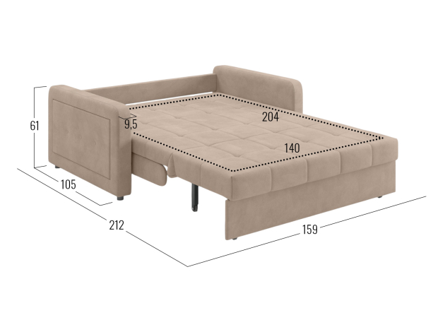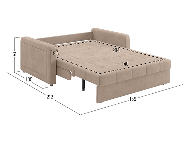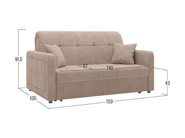 Прямой диван Реген Бежевый, велюр 140х204 Без ящика