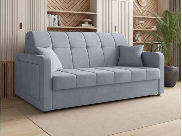 Прямой диван Реген обеспечит пространство для отдыха и украсит комнату. Прочный каркас и надежный раскладной механизм уверенно выдерживают ежедневную эксплуатацию. Модель быстро трансформируется в комфортное спальное место, а в сложенном виде — это стильный диван с мягкой обивкой, которая не требует особого ухода и легко чистится. Модель со всех сторон обита лицевой тканью, поэтому ее можно использовать для зонирования.