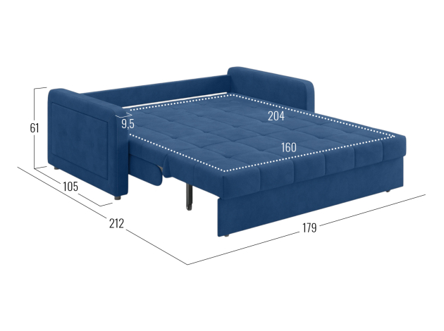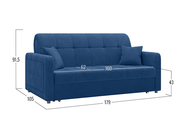 Прямой диван Реген Синий, велюр 160х204 С ящиком