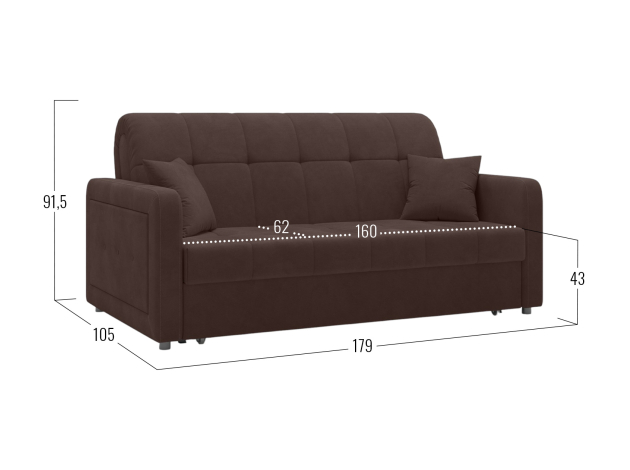 Прямой диван Реген Коричневый, велюр 160х204 Без ящика