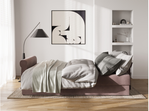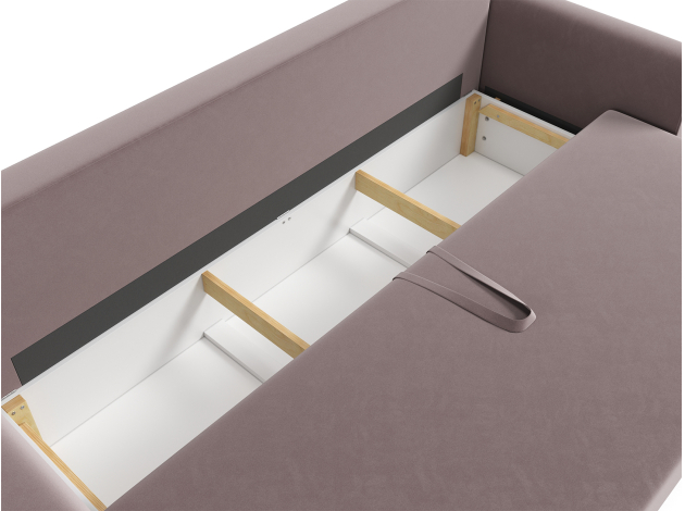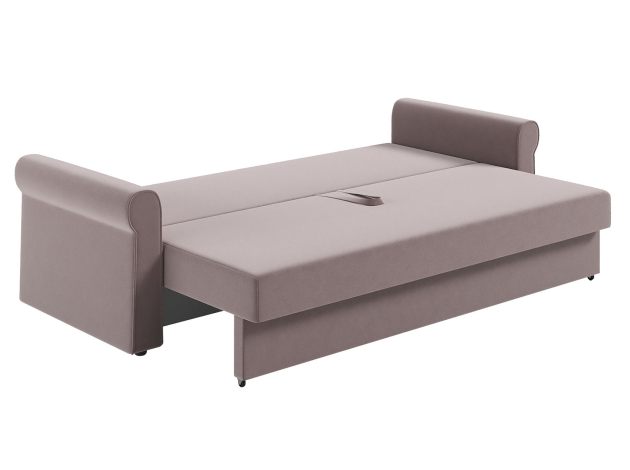Прочный раскладной механизм подходит для ежедневной эксплуатации и быстро превращает диван в полноценную кровать. Двухсекционный бельевой короб предоставляет просторное место для хранения постельных принадлежностей. Спинка обита основной тканью, поэтому с помощью модели удобно зонировать комнату.