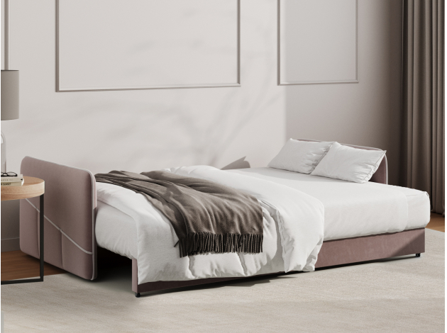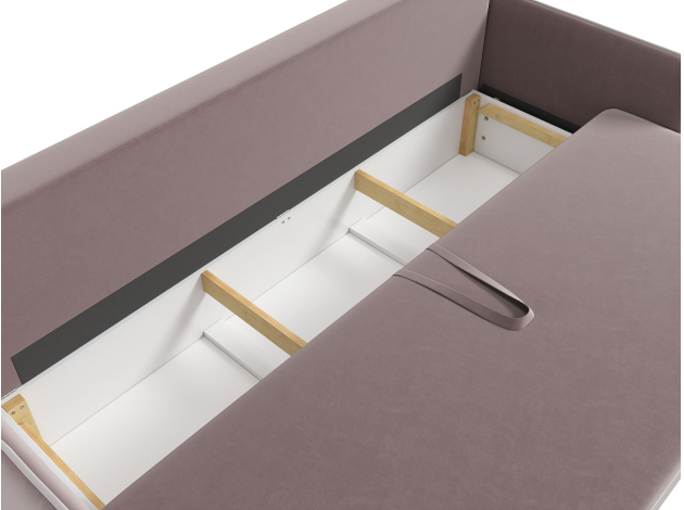 Модель оснащена надежным раскладным механизмом и быстро трансформируется в удобную двуспальную кровать, которая подходит для ежедневного сна. Просторный бельевой короб создает дополнительное место для хранения постельных принадлежностей, сезонных вещей или теплых пледов.