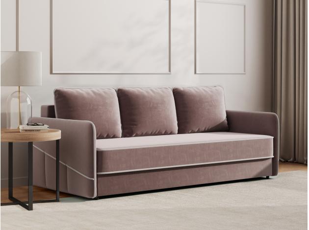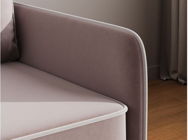 Прямой диван Саймон — комфортная и практичная модель. Приятная на ощупь обивка легко чистится от загрязнений, а контрастный кант подчеркивает лаконичный силуэт. Узкие подлокотники позволяют сэкономить пространство комнаты. Диван со всех сторон обит основной тканью, поэтому его можно установить как вдоль стены, так и использовать для зонирования гостиной.