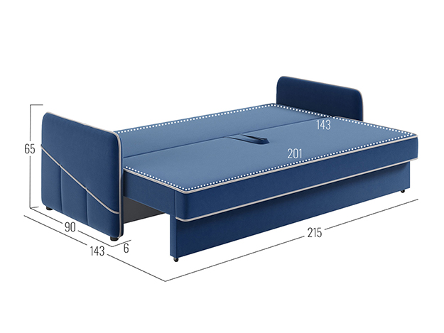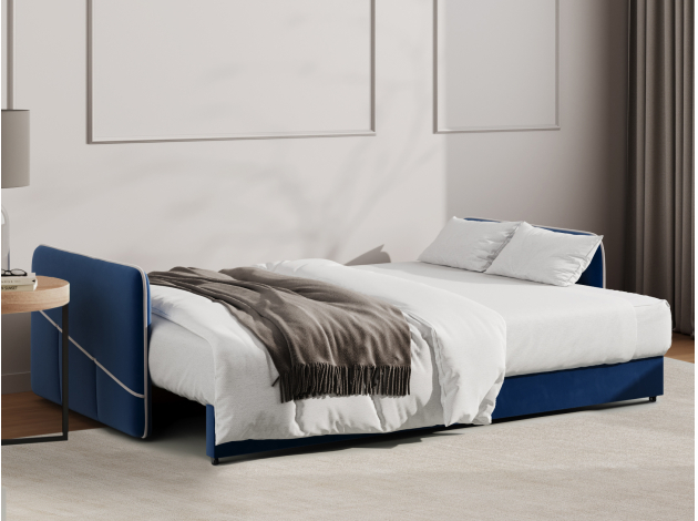 Модель оснащена надежным раскладным механизмом и быстро трансформируется в удобную двуспальную кровать, которая подходит для ежедневного сна. Просторный бельевой короб создает дополнительное место для хранения постельных принадлежностей, сезонных вещей или теплых пледов.