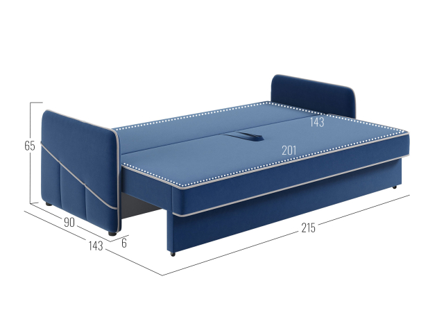 - Посадочное место без подушек (ШхГ): 201 х 79 см.