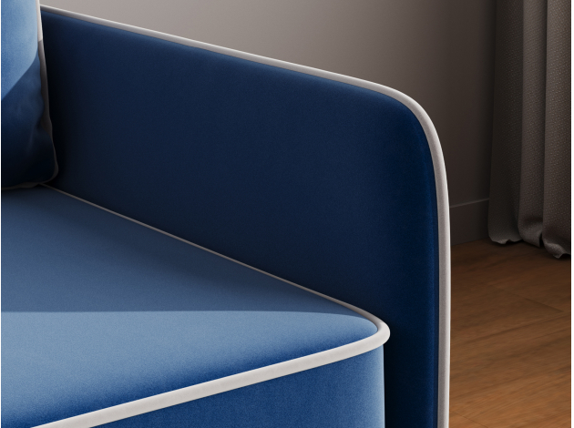 Прямой диван Саймон — комфортная и практичная модель. Приятная на ощупь обивка легко чистится от загрязнений, а контрастный кант подчеркивает лаконичный силуэт. Узкие подлокотники позволяют сэкономить пространство комнаты. Диван со всех сторон обит основной тканью, поэтому его можно установить как вдоль стены, так и использовать для зонирования гостиной.