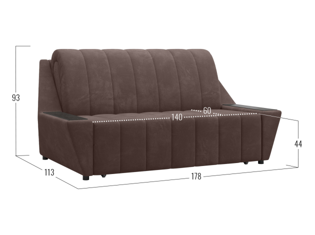 Прямой диван Осло Коричневый, велюр 140х200 см С ящиком