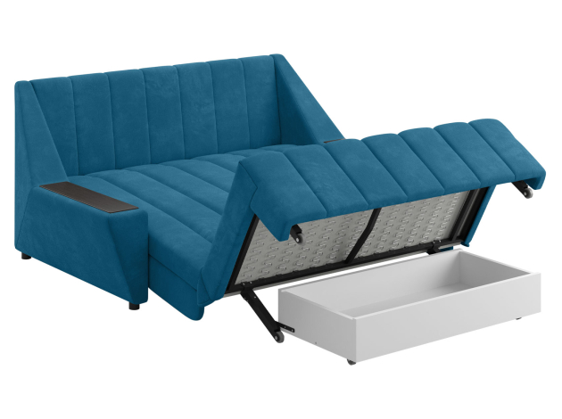 Прямой диван Осло Синий, велюр 140х200 см С ящиком
