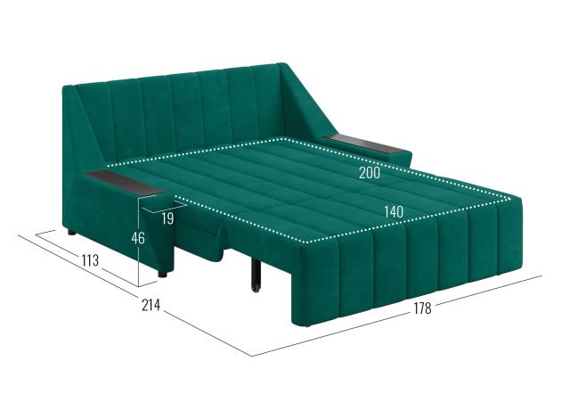 Прямой диван Осло Зеленый, велюр 140х200 см С ящиком