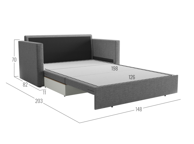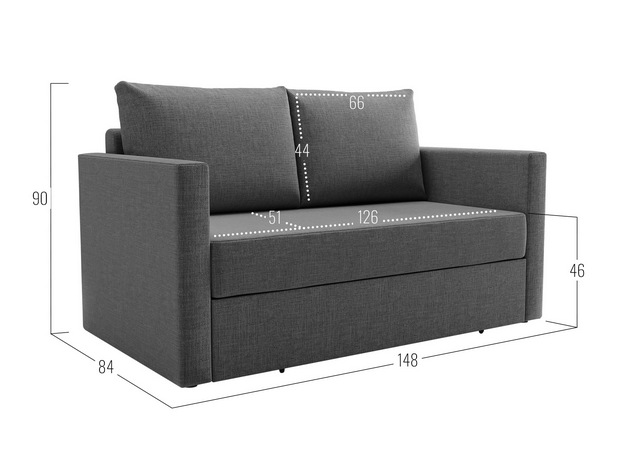- Посадочное место без подушек (ШхГ): 126 х 67 см.