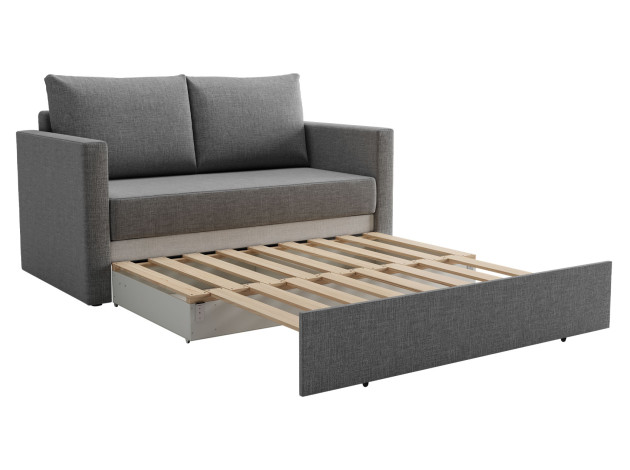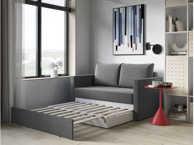 Прямой диван Альфа идеален для небольшого помещения, в котором необходимо дополнительное спальное место. Минималистичный дизайн позволяет гармонично разместить модель в любом современном интерьере. Благодаря объемным подушкам и удобным подлокотникам на нём очень комфортно отдыхать. Простой механизм быстро превращает диван в ровное место для сна, а бельевой короб расширяет возможности для хранения.