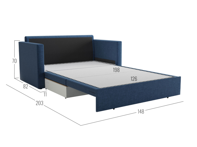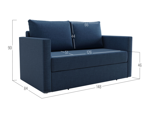 Прямой диван Альфа Синий, рогожка