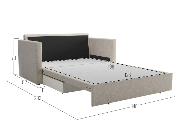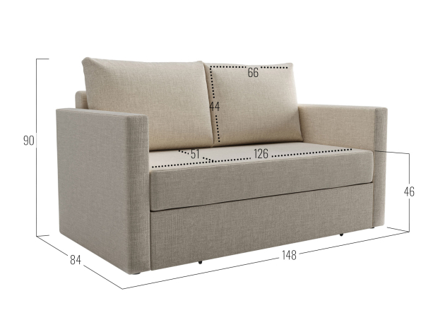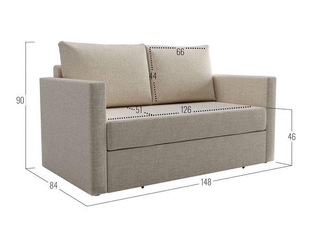 - Посадочное место без подушек (ШхГ): 126 х 67 см.