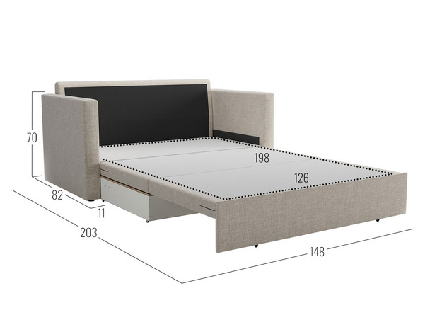- Размер ящика для белья (ВхШхГ): 13,5 х 116 х 65,5 см.
